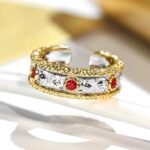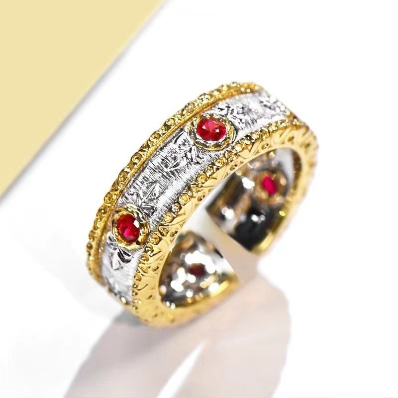 Retro Italian Red Corundum Ring Style Ball Edge Color Separation Women